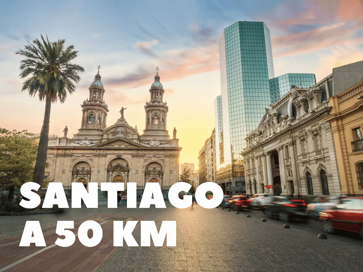 Descubre la ubicación estratégica de Fundo Baracaldo, perfectamente conectado con las principales zonas de la Región Metropolitana y la Quinta Región. Haz clic en las imágenes para explorar las conexiones clave que hacen de este proyecto una opción inmejorable para tu nueva parcela.